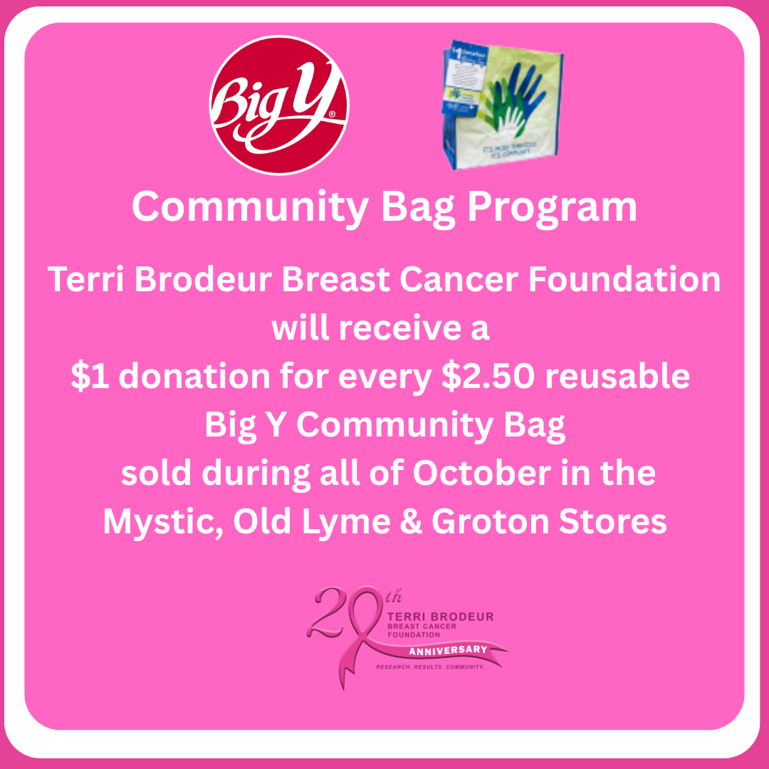 For every $2.50 Big Y Community Bag purchased, $1 is donated directly to TBBCF — helping fund life-saving breast cancer research and support programs.