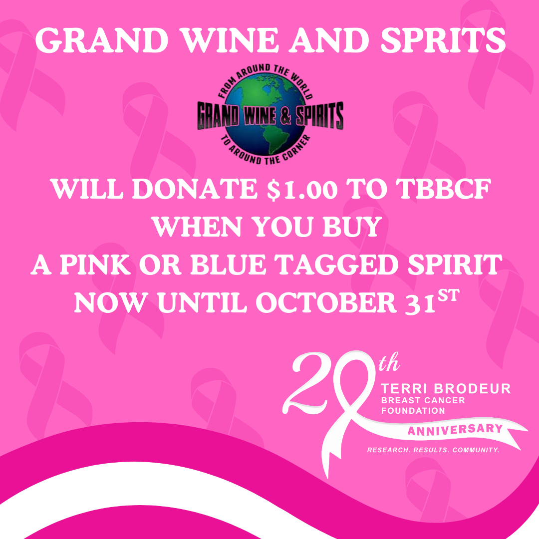 $1 donated to TBBCF for every pink or blue tagged spirit purchased!